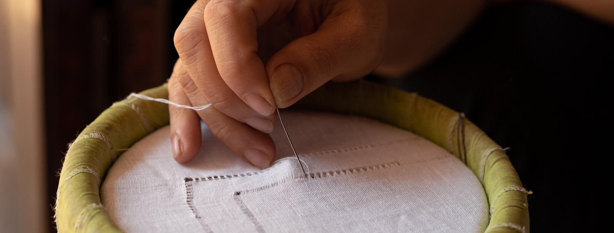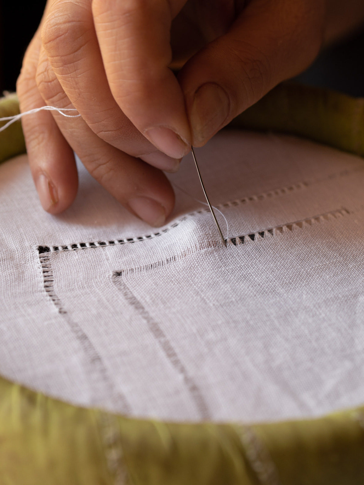 All of our linen napkins and table runners are made in a small, family run workshop in a village outside of Hanoi, Vietnam. The village has a rich history in traditional embroidery techniques.
